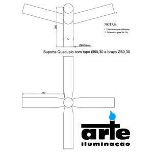 Suporte para Luminária Quadruplo 7660 Topo ⌀ 76,20 Braço ⌀ 60,30