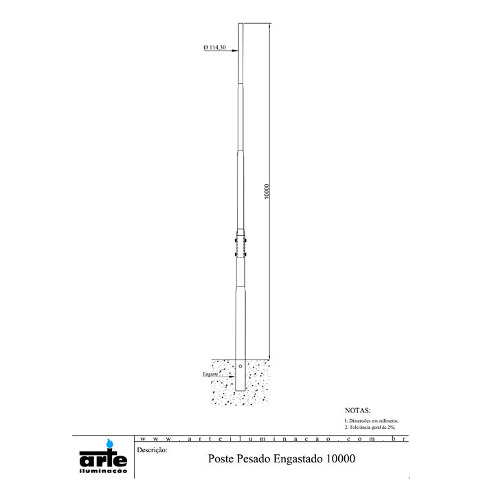 >> Poste Pesado Engastado / Poste Pesado Engastado 10 Metros Dimensões em milímetro Tolerância geral 2% Sem escala Material em aço 1010/1020