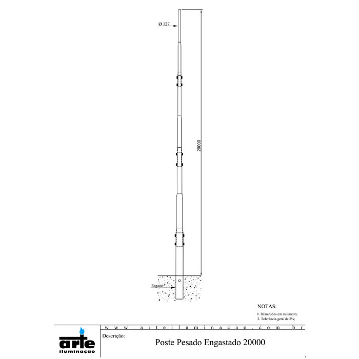 >> Poste Pesado Engastado / Poste Pesado Engastado 20 Metros Dimensões em milímetro Tolerância geral 2% Sem escala Material em aço 1010/1020