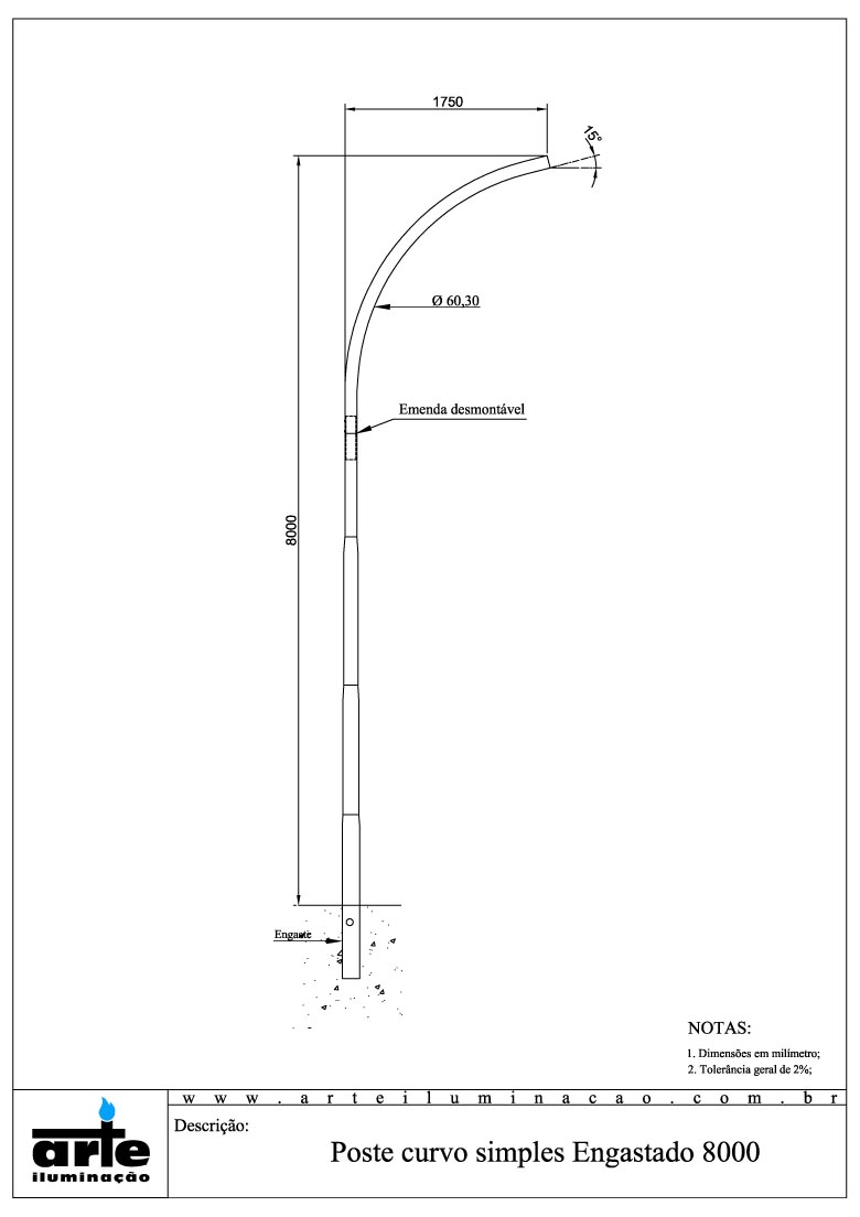 Fabricação de postes metálicos para iluminação, transmissão e distribuição de energia elétrica, com equipamentos(maquinas) e tecnologia de ponta a Arte Iluminação fabrica e comercializa postes engastados para superar as metas e expectativas de seus clientes.