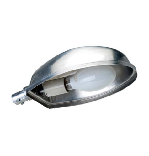 Luminária para iluminação publica aberta para uso externo, para 1 lâmpada. Corpo refletor estampado em chapa de alumínio anodizado e selado.